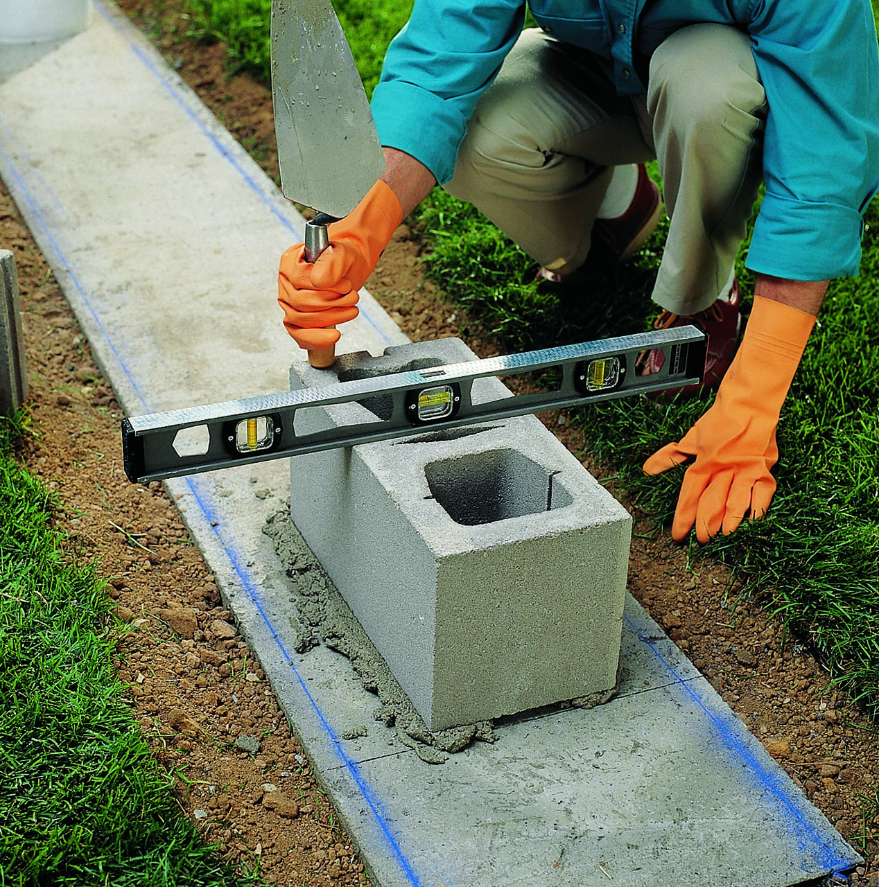 Ensure solid footing. Footings should be a minimum of twice the width of the concrete block (i.e., a typical 8 x 8 x 16 block would require a 16-inch wide footing) and extend below the frost line. Check local building codes for construction requirements in your area.
