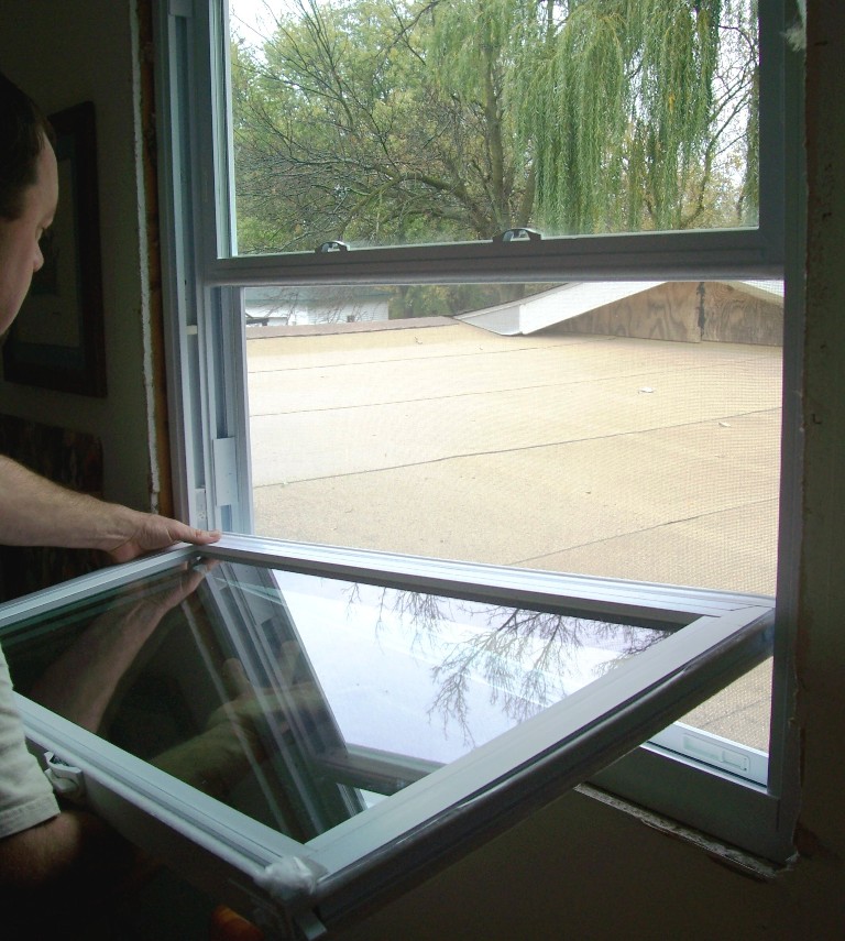 (photo 7) Install the new screen and removable sashes and check for proper operation.