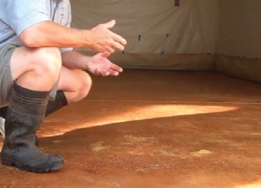 After the stain is dry, a powder residue covers the floor. Clean it off the floor completely before applying the epoxy.
