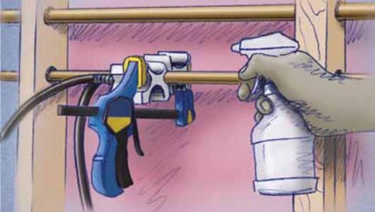 Place the freeze jacket around the pipe a few inches from the work area, and tie each end of the jacket tightly with wire ties or string. Connect the extension tube from the jacket to the aerosol can and follow the manufacturer’s instructions.
